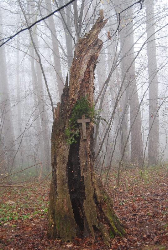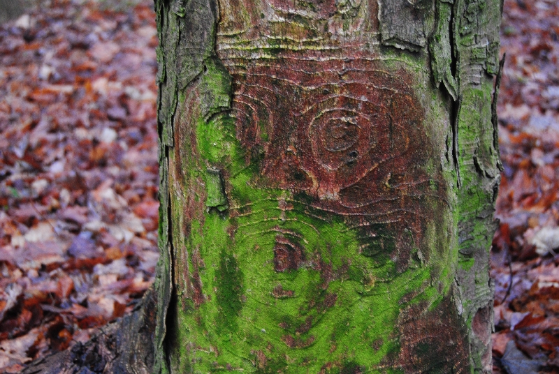 Beim zweiten Bildbaum finden sich kaum Opfergaben, aber rein optisch ist er ein mindestens genauso beeindruckend. Er steht auf einem radiästhetisch sehr intensiven Platz, direkt auf zwei Bruchkanten.