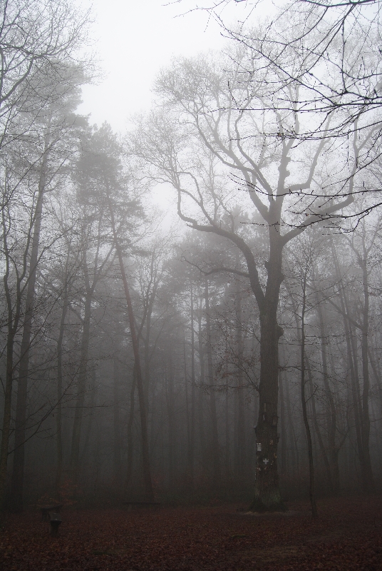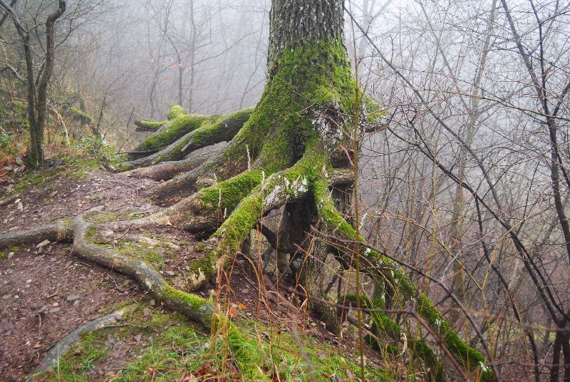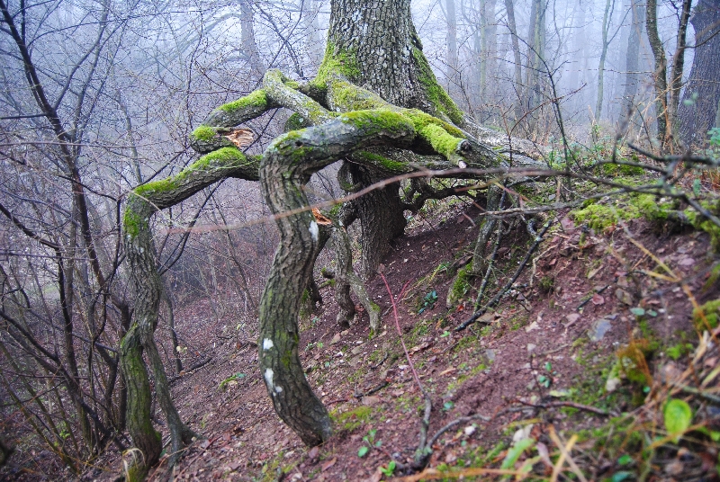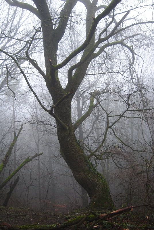 Rund um den Steinbruch findet man sehr spezielle Bäume, die im Dezembernebel noch um einiges interessanter ausgesehen haben – als würden urzeitliche Fabelwesen hier auf den Kuss aus dem Dornröschenschlaf warten.