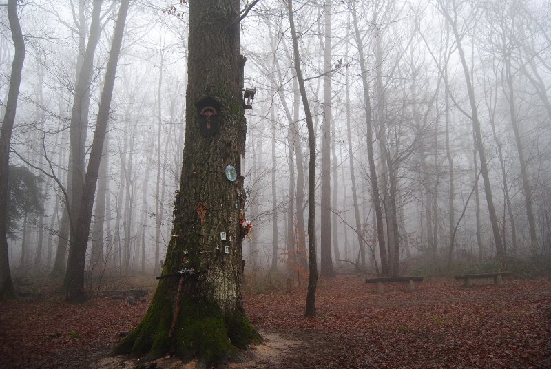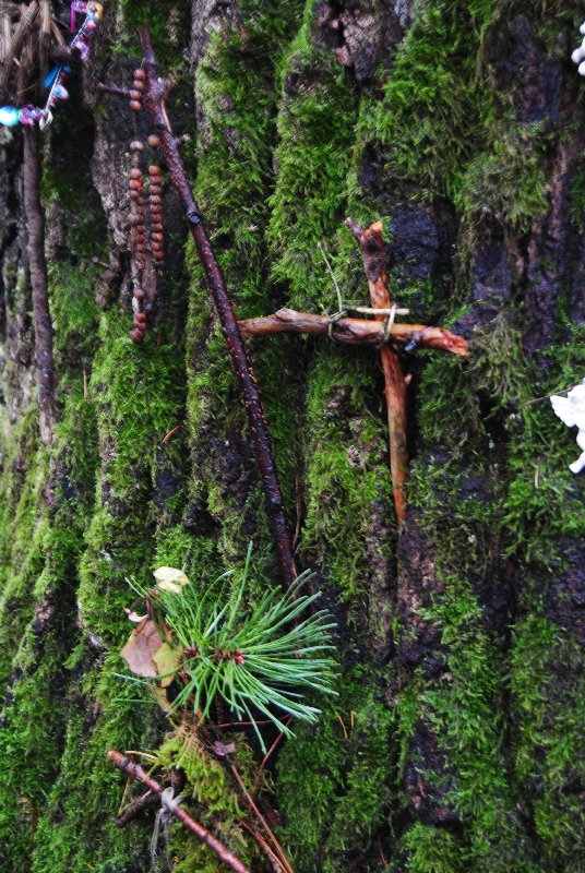 Beim Spaziergang haben wir auch zwei schöne Bildbäume besucht. Der eine ist ein sehr imposantes Prachtstück, der auch heute noch als Wallfahrtsort dient, wie man an den zahlreichen und sehr vielfältigen Opfergaben sehen kann.