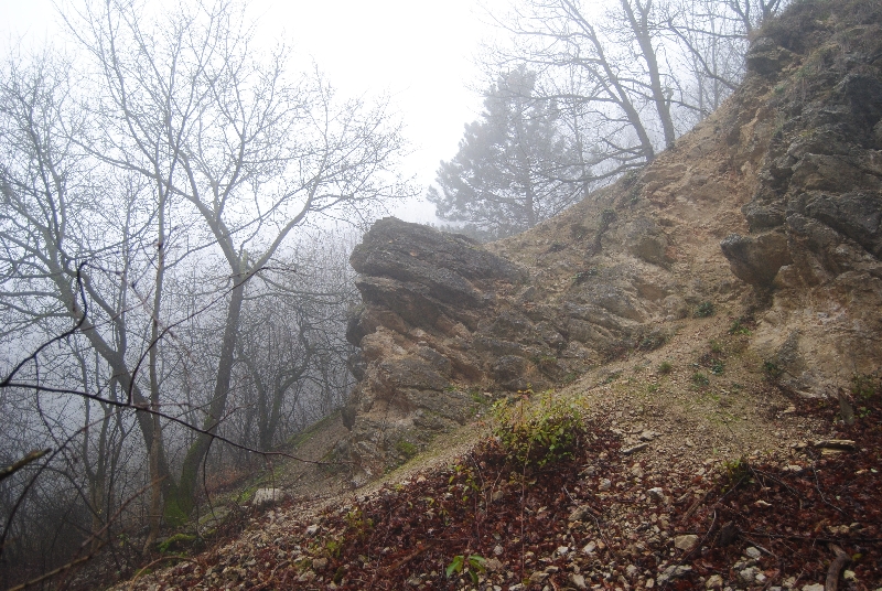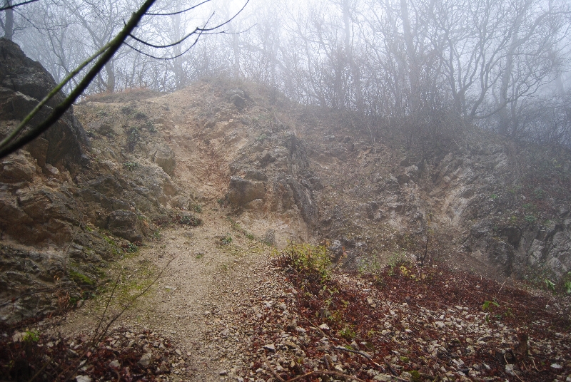 Die Geologie im Untergrund sieht (und spürt) man hier besonders gut. Der Steinbruch ragt im örtlich vorhandenen Sandstein als Klippe heraus. Eine Klippe, die großteils aus radiolithältigem Untergrundstein besteht. Unmittelbar neben der Sandsteinzone (Flysch) findet sich Kalkstein, als Ausläufer der 500km langen Kalkalpen. Die Grenze zwischen den Bodenarten kann man gut am unterschiedlichen Baumbestand sehen: Die Föhren stehen am Kalkstein, die Buchen haben den Sandstein als Untergrund. Im Bild links sieht man das sehr deutlich, der Weg geht exakt auf der Bruchkante, der die beiden Steinarten voneinander abgrenzt.