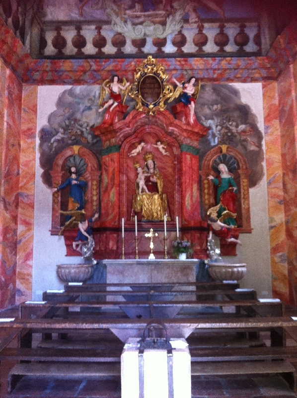 Laut Aushang war es schon fast ein “Brauch”, dass sich Pilger an den Wänden der kleinen Kirche mit Graffitis verewigten, und zwar seit knapp 300 Jahren. Bei der Renovierung fand man unzählige Inschriften und hat sogar einen kleinen Teil der Wand dementsprechend im alten, graffitiüberzogenen Urzustand belassen.