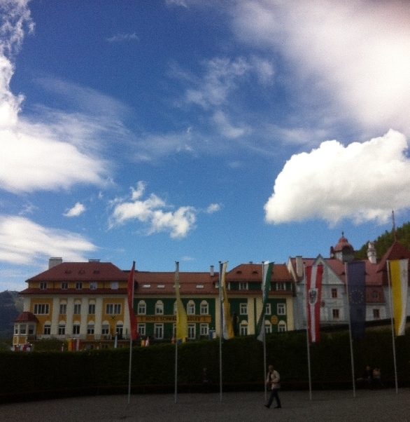 Eingedenk dessen und auch um meinem Mariazell-Besuch einen würdigen Abschluss zu gönnen, hab ich es mir dann in einer kleinen Konditorei gemütlich gemacht – bei einem köstlichen Schaumspitz und einer exzellenten Biskuitroulade ;-), genossen auf der schönsten Terrasse von Mariazell. So stand´s zumindest im Aushang und ich fand sie wirklich ganz wunderbar.