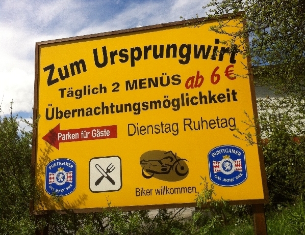 Also ging es nun ein paar Meter außerhalb des Ortes, hinunter vom Berg und hin zum Gasthof zum Ursprung, denn dahinter soll der besagte Felsen sein.