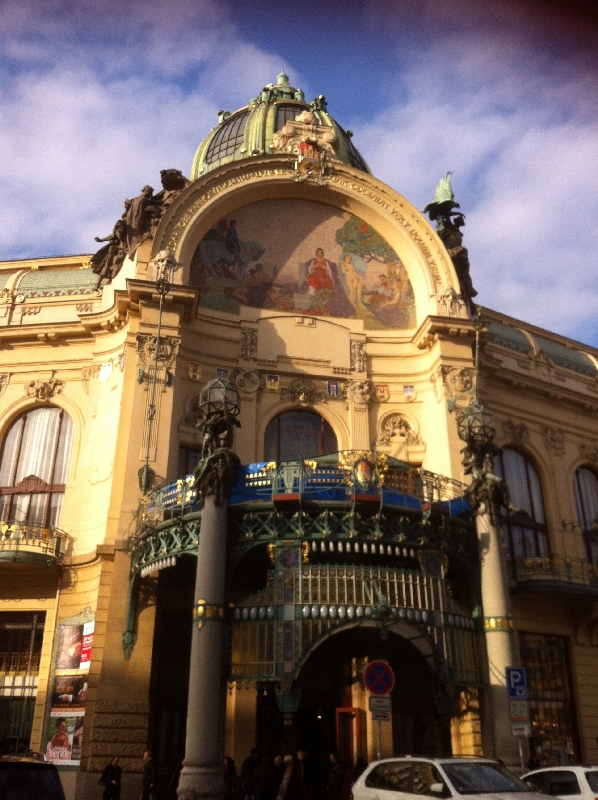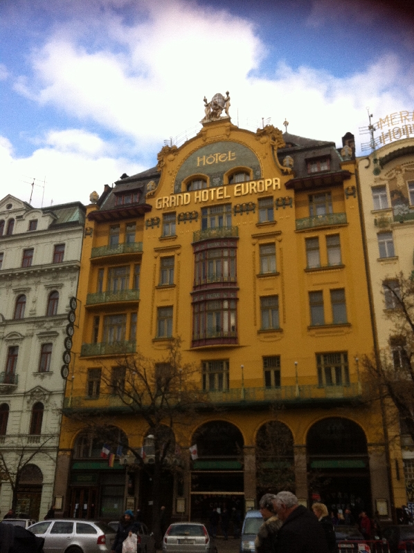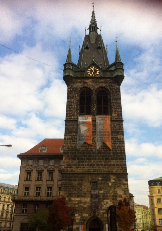 An Metern waren es nicht so viele, aber an Eindrücken dafür umso mehr. Wir sind von der Nationalbibliothek über den Wenzelsplatz zum Pulverturm marschiert. Vorbei an Jugendstilbauten, mittelalterlichen Bauwerken und einer Fülle von Symbolen und Denkmälern jeder Art. Der alte Pulverturm ist direkt verbunden mit dem Gemeindehaus (Obecní Dum), einem Jugendstiljuwel mit Cafehaus und American Bar.