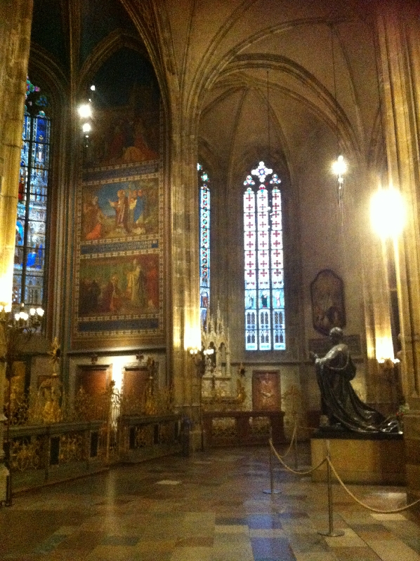 Ich habe es auch kurz zur Wenzelskapelle geschafft und ein weiteres Aha-Erlebnis gehabt: abgesehen von der üppigen Ausstattung der Kapelle, die an sich schon sehr beeindruckend ist, “schreit” sie regelrecht vor Energie – wie eine hochaufgeladene Batterie. Ein sehr starker Platz und lange kann man es hier nicht aushalten.