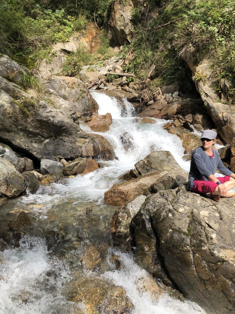 Ich liebe Gebirgsbäche und habe es heuer sehr vermisst, dass es sich nirgends ergeben hat, dass ich in einen eintauchen konnte. Das Wasser eines Gebirgsbaches ist dem Meer sehr ähnlich – nur meist um einiges kälter ;-) Insofern war es nur logisch, dass ich für meinen persönlichen Abschluss dieses Retreats spontan ins Wasser gestiegen bin, um mich auf ein paar Felsen in der Mitte des Baches zu setzen und zu stellen.